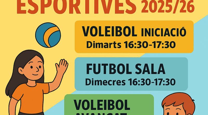 Llegir mésDes del Pla Català d’Esport a l’Escola, us presentem les activitats que oferirà el nostre institut aquest curs: 👉 Voleibol