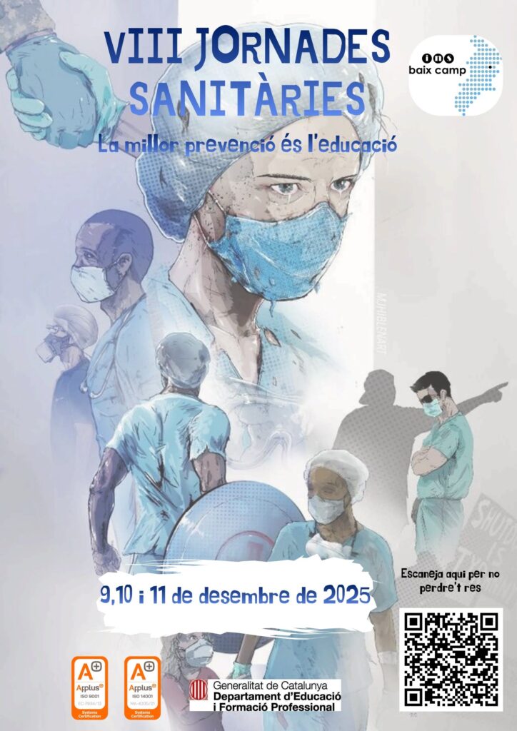 Els propers 9, 10 i 11 de desembre celebrarem les 8es Jornades Sanitàries del centre, amb un programa ple de ponents destacats. Parlarem de les malalties neurocognitives amb la participació de l’Associació d’Alzheimer de Reus i la Residència L’Onada de Riudoms. També s’hi abordarà el biaix de gènere en salut i s’oferirà una xerrada sobre el dol perinatal. A més, tindrem diverses ponències sobre salut oral, entre les quals destaca la del Dr. Gisbert. Aquestes jornades són una oportunitat única perquè l’alumnat connecti amb la pràctica professional i comprengui la gran responsabilitat que suposa tenir cura de la salut. Volem fomentar no només competències tècniques, sinó també habilitats ètiques i humanes fonamentals per al seu futur laboral.Us hi esperem!